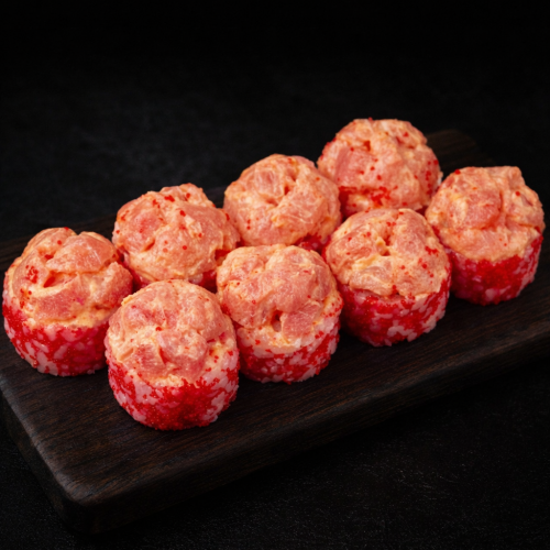 300 г. Тартар з тунця в соусі спайсі, авокадо, крем-сир, ікра масаго