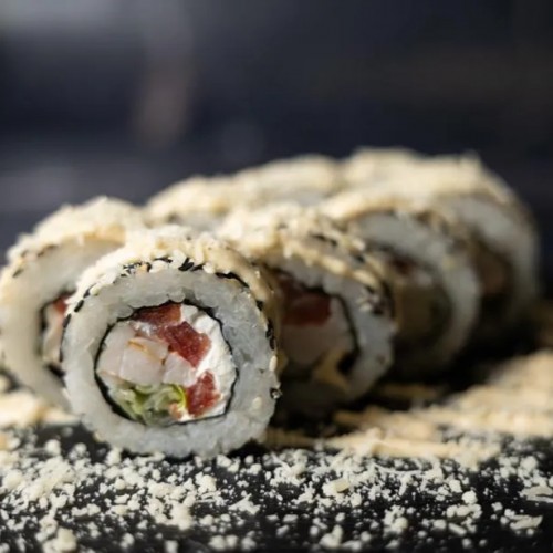 260 г Лосось гриль, спайсі соус, сир чеддер, сир твердий, омлет томагоДо комплекту входи..